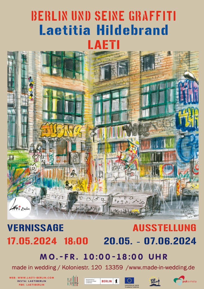 französische Künstlerin Laetitia Hildebrand (Laeti) überträgt in dieser Ausstellung das farbenfrohe, wilde, freie
