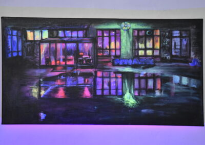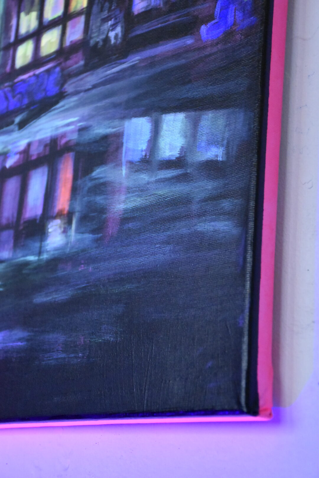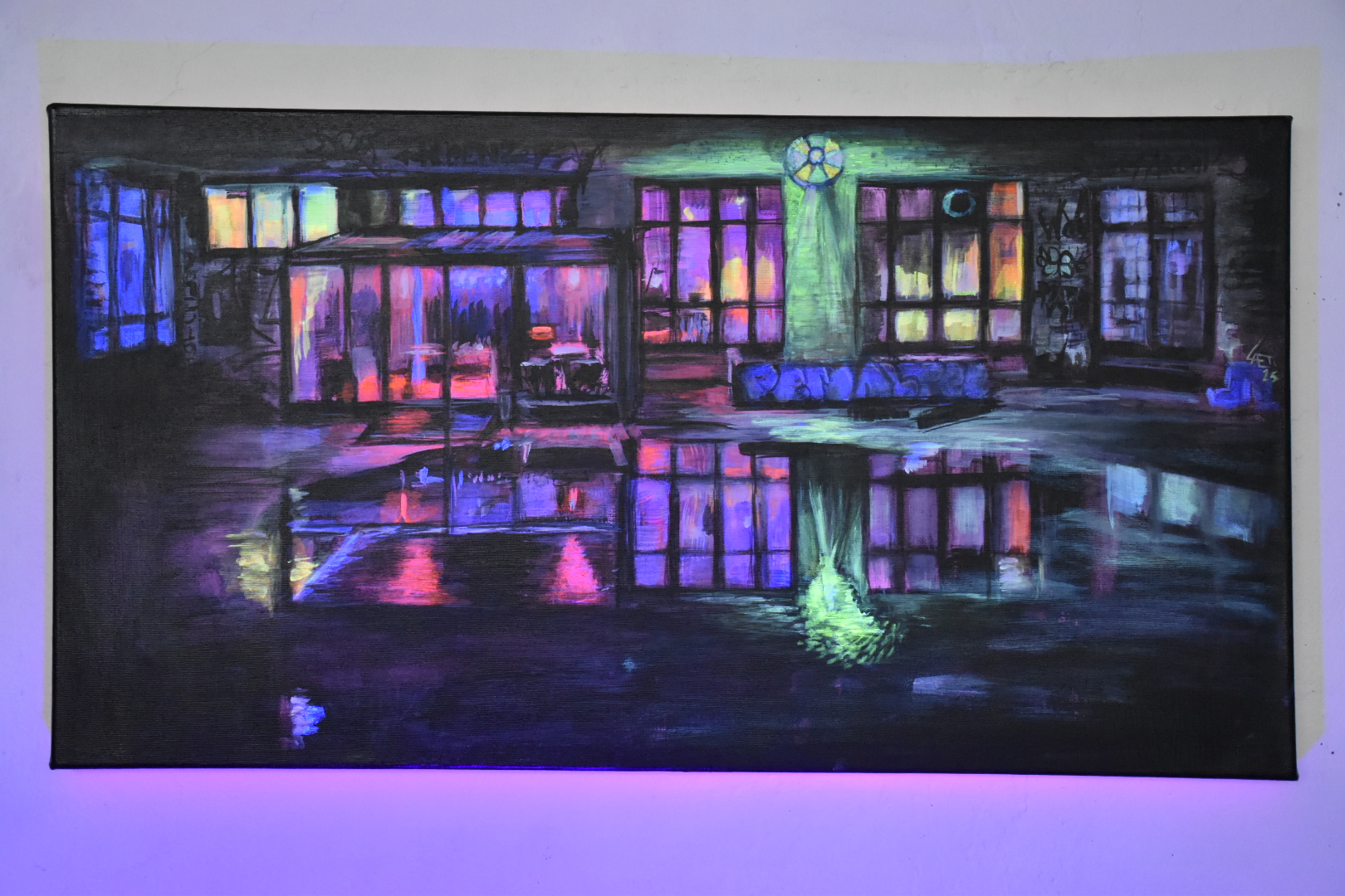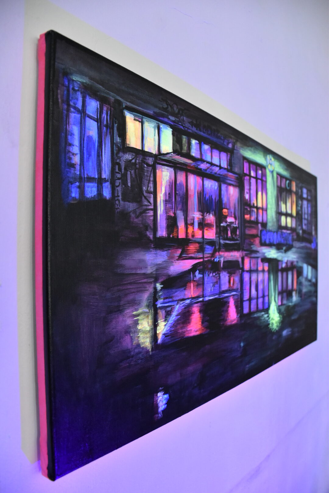 75 x 42 cm, acrylic paint on canvas (neon colors, reflected with the black light) , Laetitia Hildebrand, 08.2025