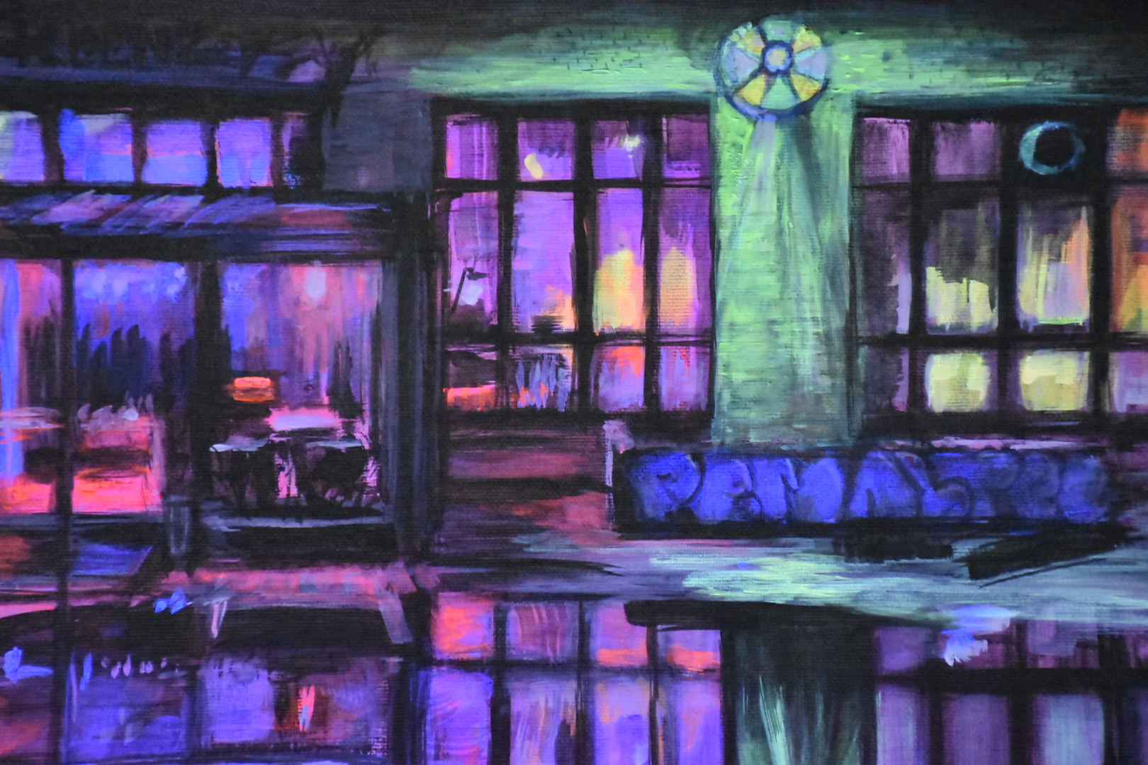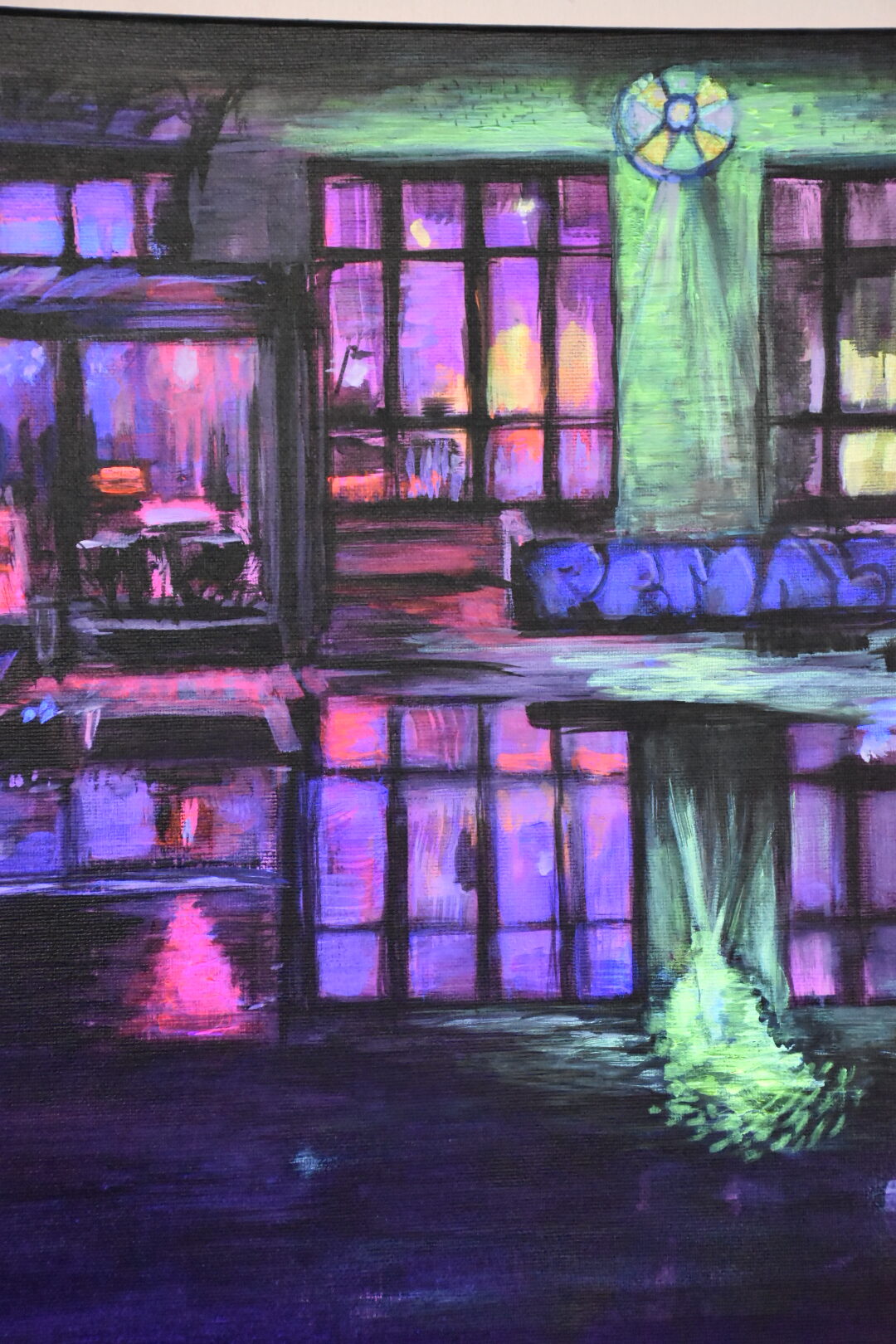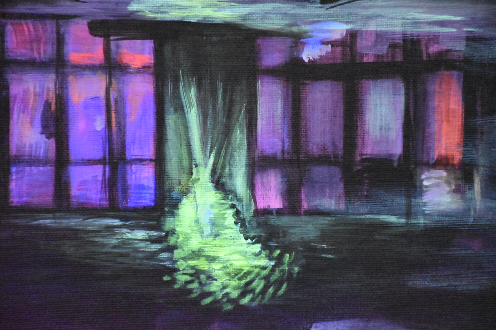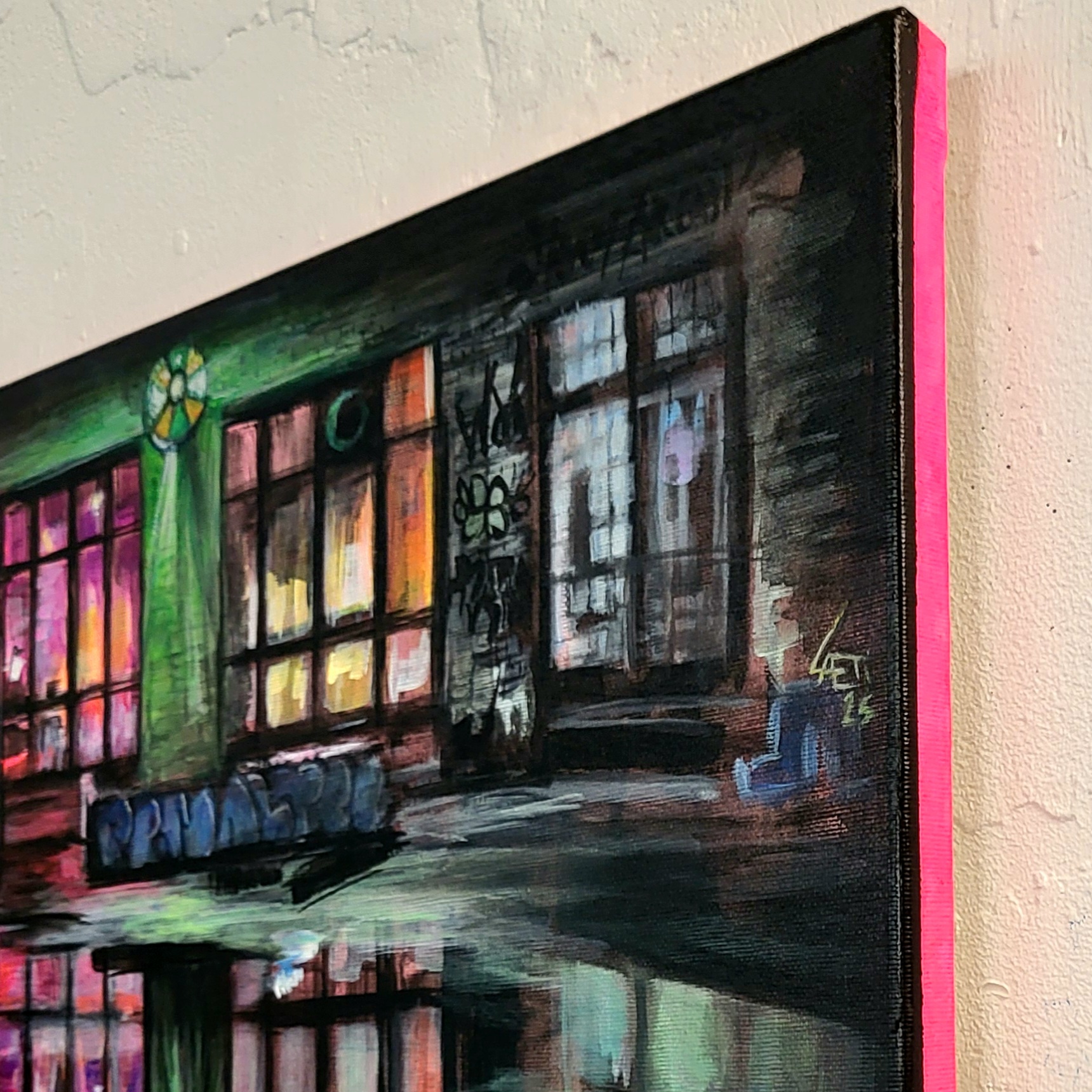 75 x 42 cm, acrylic paint on canvas (neon colors, reflected with the black light) , Laetitia Hildebrand, 08.2025