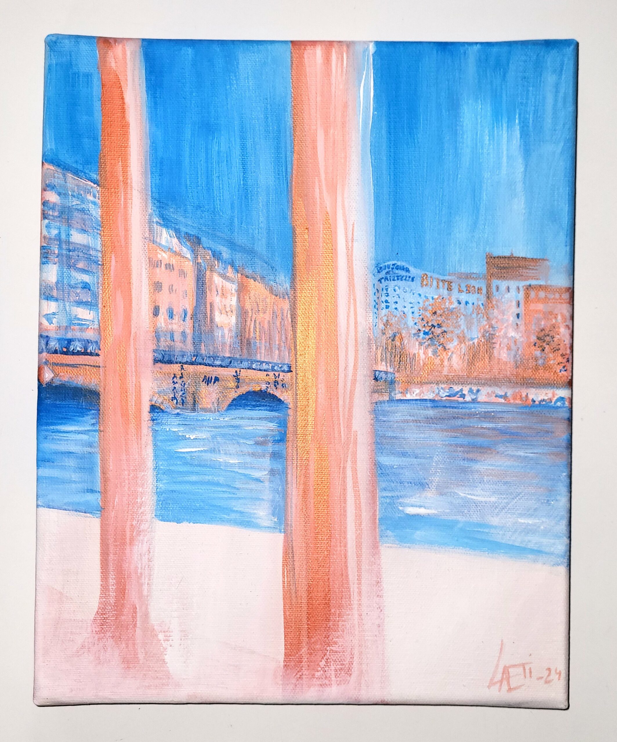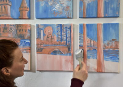 Some other graffiti are on the other side of the river, in the district of Kreuzberg, of the building #bonjourtristesse and “Bitte Lebn” on the canvas, (right bottom of the installation).